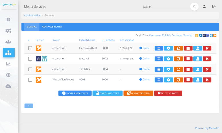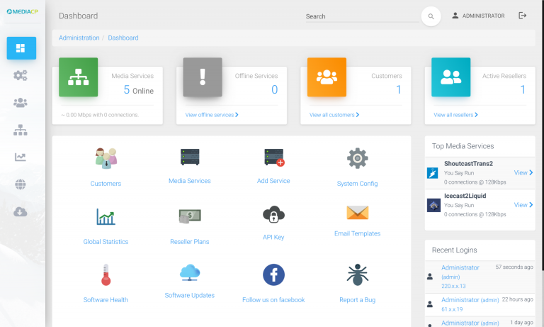 미디어 제어판은 Shoutcast 198, Shoutcast 2, Icecast 2, Icecast 2 KH, Wowza Streaming Engine & Flussonic Media Server를 지원하는 스트림 호스팅 서비스를위한 올인원 솔루션입니다.